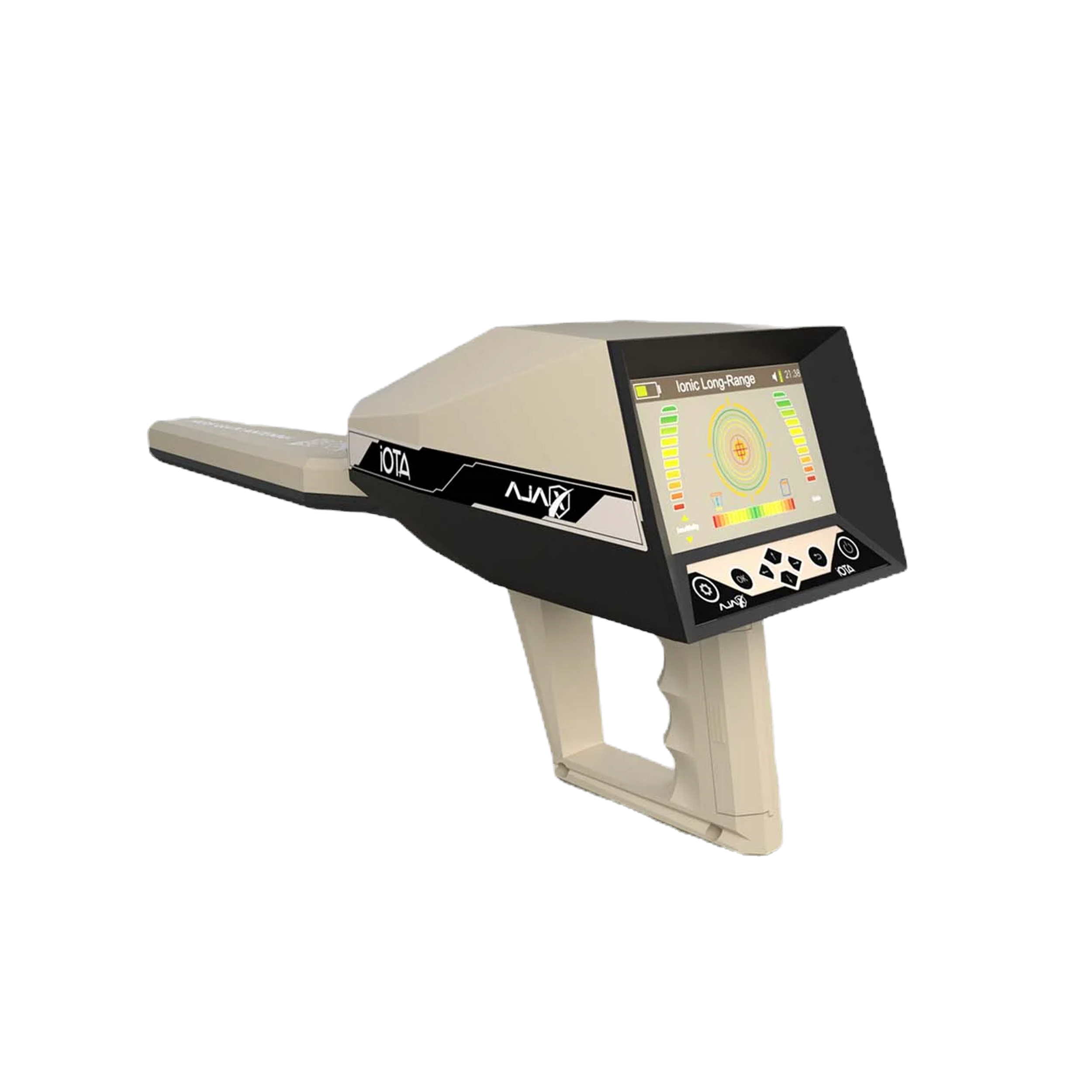 Pistola 3D Iónico es un detector portátil de alta precisión que combina escaneo 3D del subsuelo con detección iónica para confirmación real de metales enterrados. Diseñado para arqueólogos, cazadores de tesoros y exploradores exigentes, ofrece visualización en tiempo real mediante tablet o smartphone Android, alertas visuales y sonoras, calibración sencilla y batería recargable. Compacto, ligero (aprox. 1 kg) y con alcance profundo hasta 20–50 m: potencia y movilidad en cada pase.