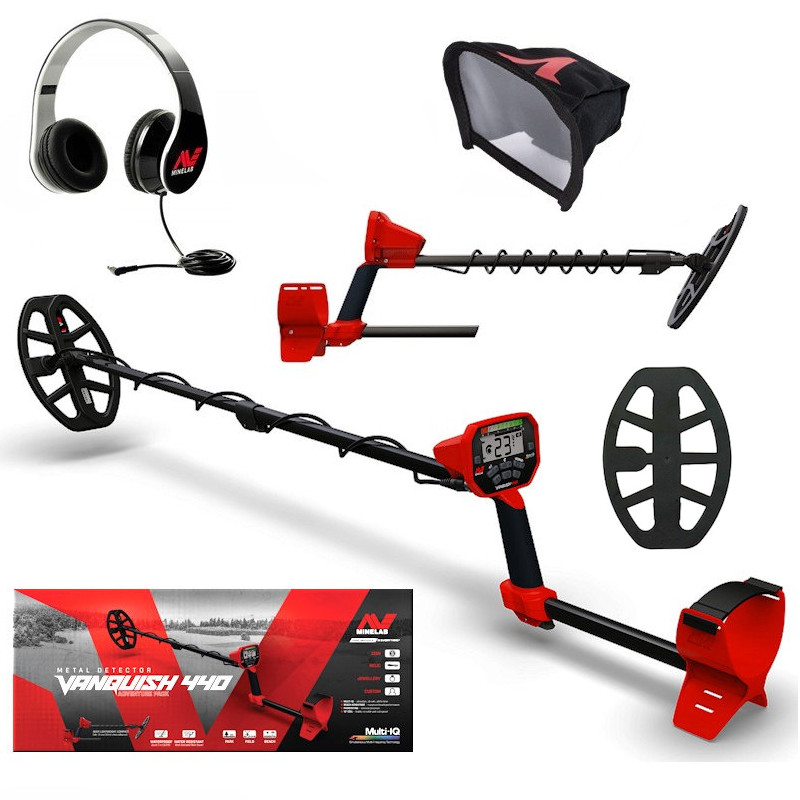Al igual que otros modelos de la serie Vanquish, el 440 está equipado con la tecnología Multi-IQ de Minelab. Esta tecnología permite al detector operar en múltiples frecuencias al mismo tiempo. Así, logra detectar una mayor variedad de objetos metálicos —desde monedas y joyas hasta reliquias— con mayor precisión, incluso en terrenos complejos o suelos mineralizados.